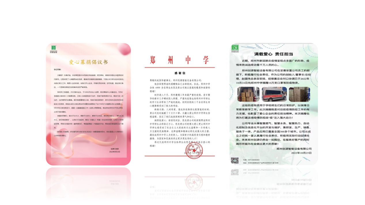 2010年公司成立之初,即向革命老區---河北省西柏坡華潤集團承建的紅色希望小鎮捐贈無線遠傳智能燃氣表及手持抄表設備、運營軟件、電腦等價值40余萬元的軟/硬件裝備。并舉辦愛心募捐活動、在抗疫斗爭中積極捐贈物資。